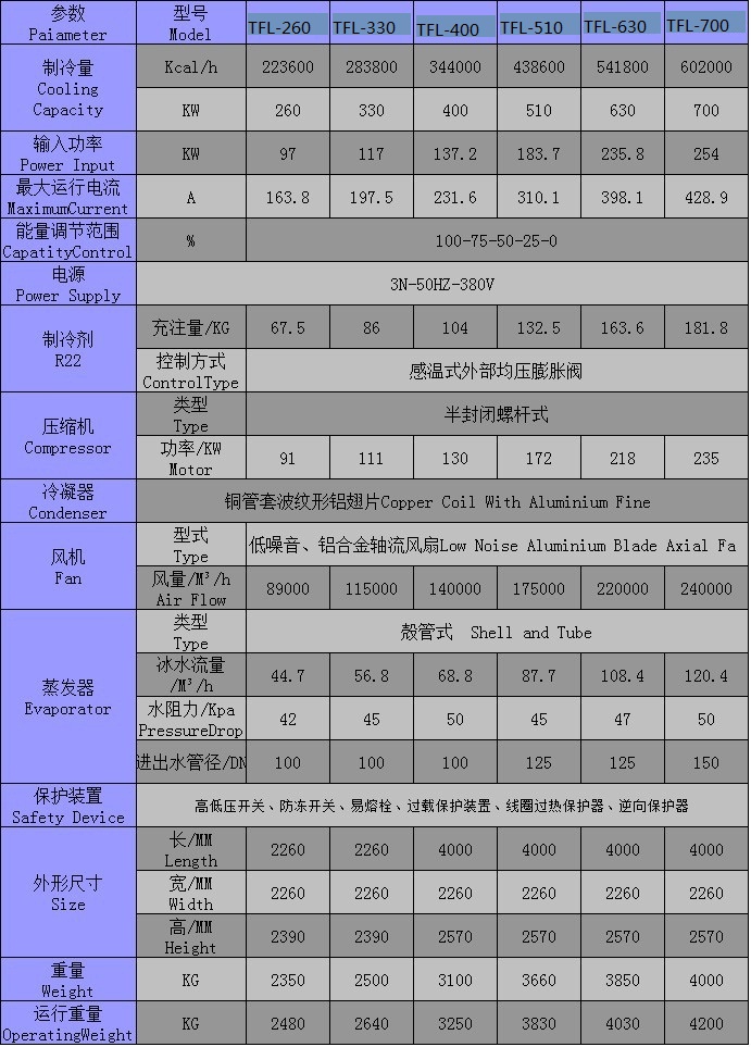 trolled ±2℃名義制冷量是依據冰水入口溫度12℃,出口溫度7℃,環境溫度35℃得出。