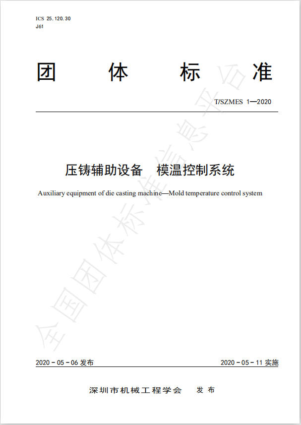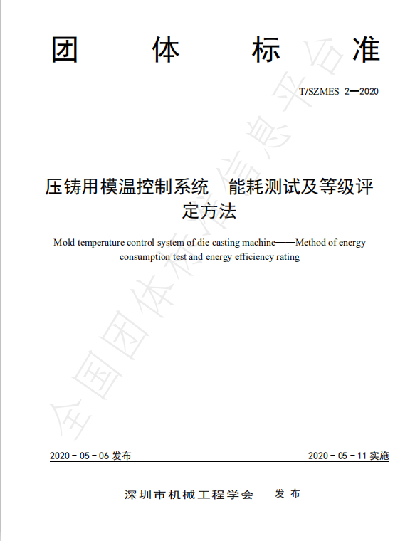 中國模溫機也有標準啦!由深圳市機械工程學(xué)會在全團體標準信息平臺2020年5月6日發(fā)布,2020年5月11日實施:壓鑄輔助設(shè)備 模溫控制系統(tǒng)(壓鑄模溫機)、壓鑄用模溫控制系統(tǒng) 能耗測試及等級評定方法的團體標準,本標準按照GB/T 1.1—2009給出的規(guī)則起草,由深圳市機械工程學(xué)會提出與歸口,起草單位蘇州奧德、深圳市奧蘭特機械、深圳大學(xué)、深圳市機械工程學(xué)會等十家相關(guān)企業(yè)天。壓鑄模溫機標準化的誕生,是模溫控制系統(tǒng)跨出了一小步,中國民企跨出了一大步。